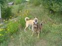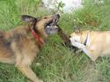 Roka & Farkas spelen met een stok